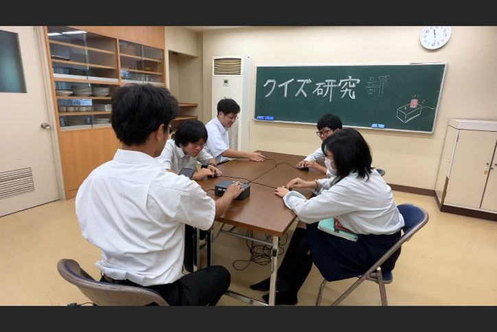 クイズ研究部は、「競技クイズに関する活動を通してクイズを楽しむこと」を目標に活動している団体で、令和6年度から部として認められました。クイズを通した交流活動を和気あいあいと楽しみながら、彦根東高校の真新しい地平を切り拓いてみようとする、知的好奇心のあるメンバーを募集しています。ぜひ見学に来て下さい。